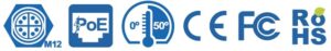 IEEE 802.3at Power over Ethernet(PoE+)、堅牢なXコードM12コネクタ、ポートあたり48V DCで最大25.5Wの電力出力、PoE+のオン/オフ制御機能を搭載