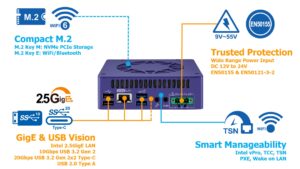 ・2基USB 3.2 Gen 2、1基USB 3.2 Gen 2x2 Type-CによるDPをサポート、2基USB 2.0、1基2.5GigE LANによるインテル® TSNをサポート