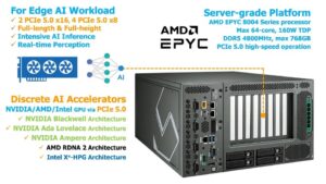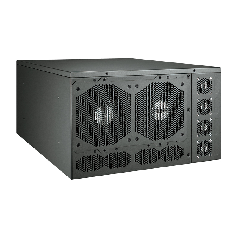 最大1800Wの電力バジェット(オプション)により、最大2枚の900W NVIDIAまたはAMDフルレングスディスクリートグラフィックスカードをサポート。AIアクセラレーション用に、最大48128基のCUDAコア、1504基のTensorコア、376基のRTコアを搭載可能