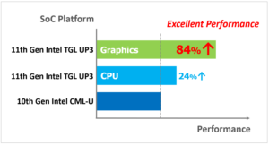 ・Max 24% ↑ CPU performance enhanced and 84% ↑ graphics performance improved than the former generation Intel SoC solutions
