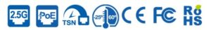 IEEE 802.3bz (2500BASE-T)、IEEE 802.3ab (1000BASE-T)、IEEE 802.3u (100BASE-TX)、IEEE 802.3i (10BASE-TX) 準拠