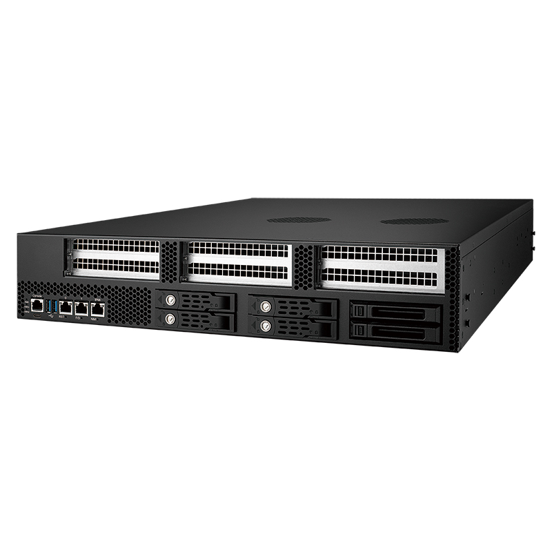 フロントアクセス可能な2.5インチ・ホットスワップ対応SSD/HDD x 4基とU.2 x 2基(RAID 0、1、5、10をサポート)